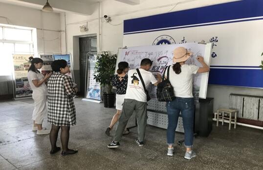 图二 学生正在“签名墙”签名留念