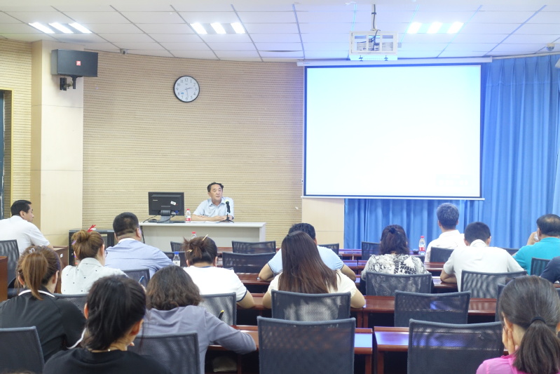 随后院长张凤都明确了干部调整后学院领导班子工作分工,并对学院上半年工作进行了工作小结。张凤都在总结中回顾了上半年学院主要工作,分析了目前学院工作中存在的主要问题和面临的形势,提出学院未来发展的思路与对策,分享了自己到学院工作后几点思考。希望全体职工能够树立珍惜岗位意识、爱院如家意识、勤于思考意识、开拓进取意识、服务意识、忧患意识和市场意识。