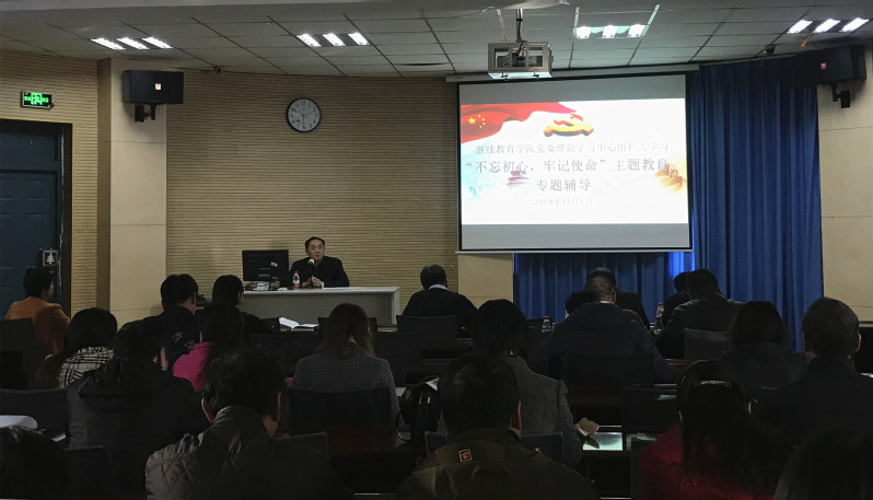 11月1日下午,学院党委在沈河校区主楼Z102室举行党委理论学习中心组(扩大)学习暨“不忘初心、牢记使命”主题教育辅导。党委理论中心组成员、全体党员和部分职工代表参加了会议,会议由党委书记卢俊杰主持。马克思主义学院教授朱丽颖应邀为大家做了题为《守初心担使命,深刻理解和坚持中国道路》的辅导讲座。