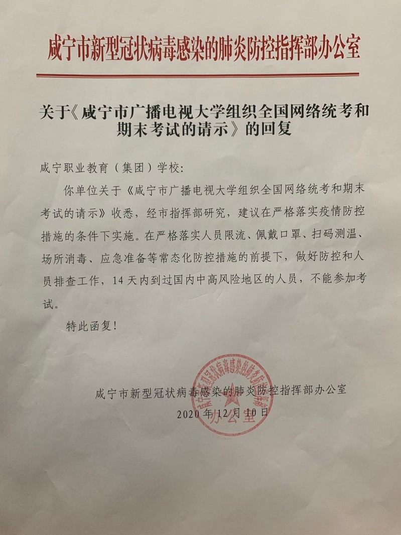 转发:2020年12月统考湖北咸宁考点防疫要求