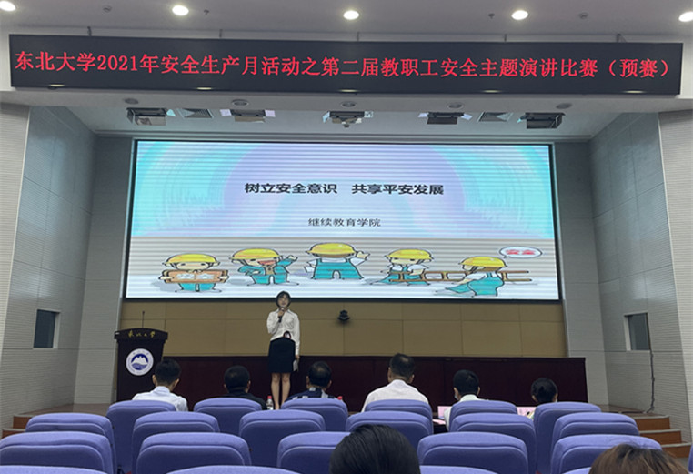 在学校举办的安全演讲预赛中,经过激烈角逐,学院培训中心石慧进入决赛,通过精彩的演讲,充分展现了学院在安全工作上的标准化管理,最终荣获东北大学第二届教职工安全主题演讲比赛三等奖。
