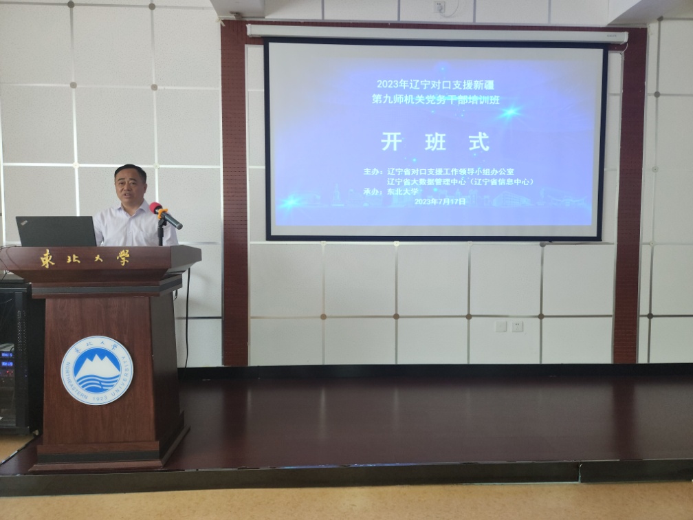 7月17日上午,新疆九师机关党务干部培训班开班式在东北大学沈河校区研修教室举行。辽宁省大数据管理中心对口智力支援服务中心周思聪、石钰传,东北大学继续教育学院副院长栗志等出席开班式。