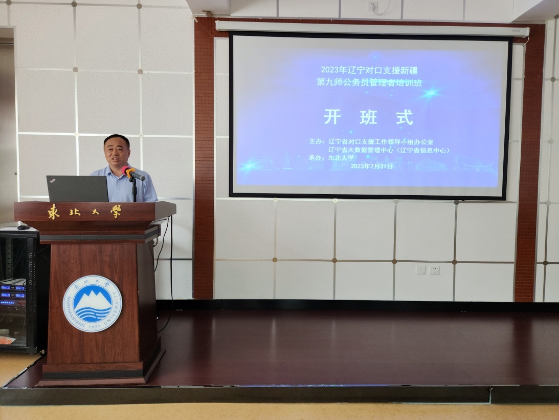 7月21日上午,新疆九师公务员管理者培训班开班式在东北大学沈河校区研修教室举行。辽宁省大数据管理中心对口智力支援服务中心张小磊、石钰传,东北大学继续教育学院副院长栗志等出席开班式。
