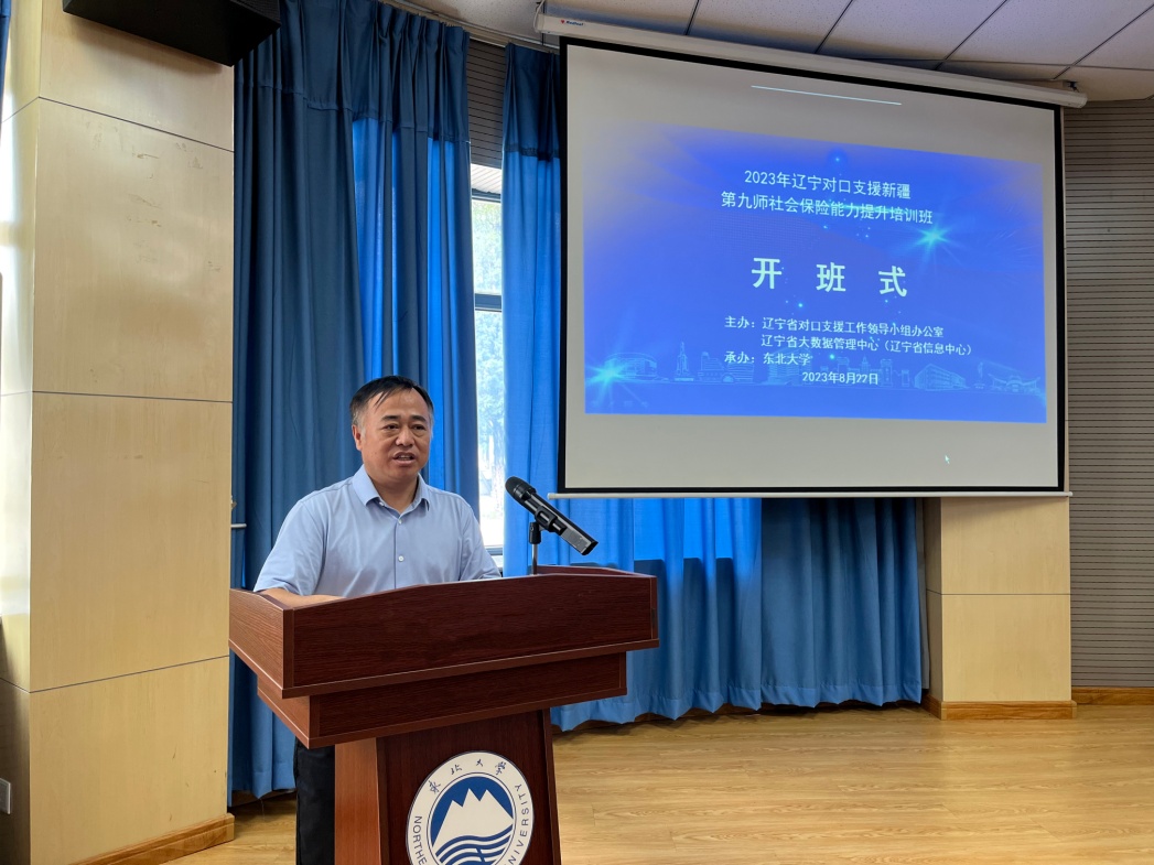 8月22日上午,新疆九师社会保险能力提升培训班开班式在东北大学沈河校区主楼东阶一教室举行。辽宁省大数据管理中心对口智力支援服务中心程帆、王琪,东北大学继续教育学院副院长栗志等出席开班式。