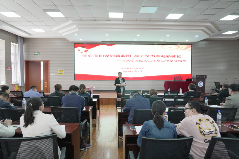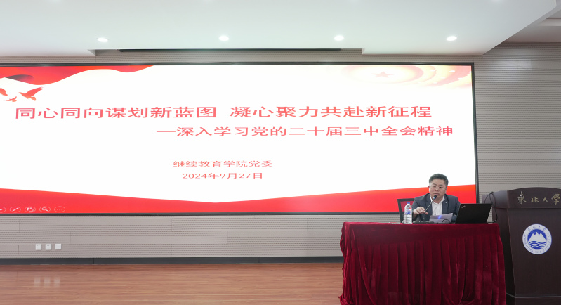 9月27日,继续教育学院党委在沈河校区教学讲堂博学厅举办党的二十届三中全会精神专题辅导报告,继续教育学院和沈河校区管理委员会全体教职工参加会议,学院党委书记赵彩清主持会议。