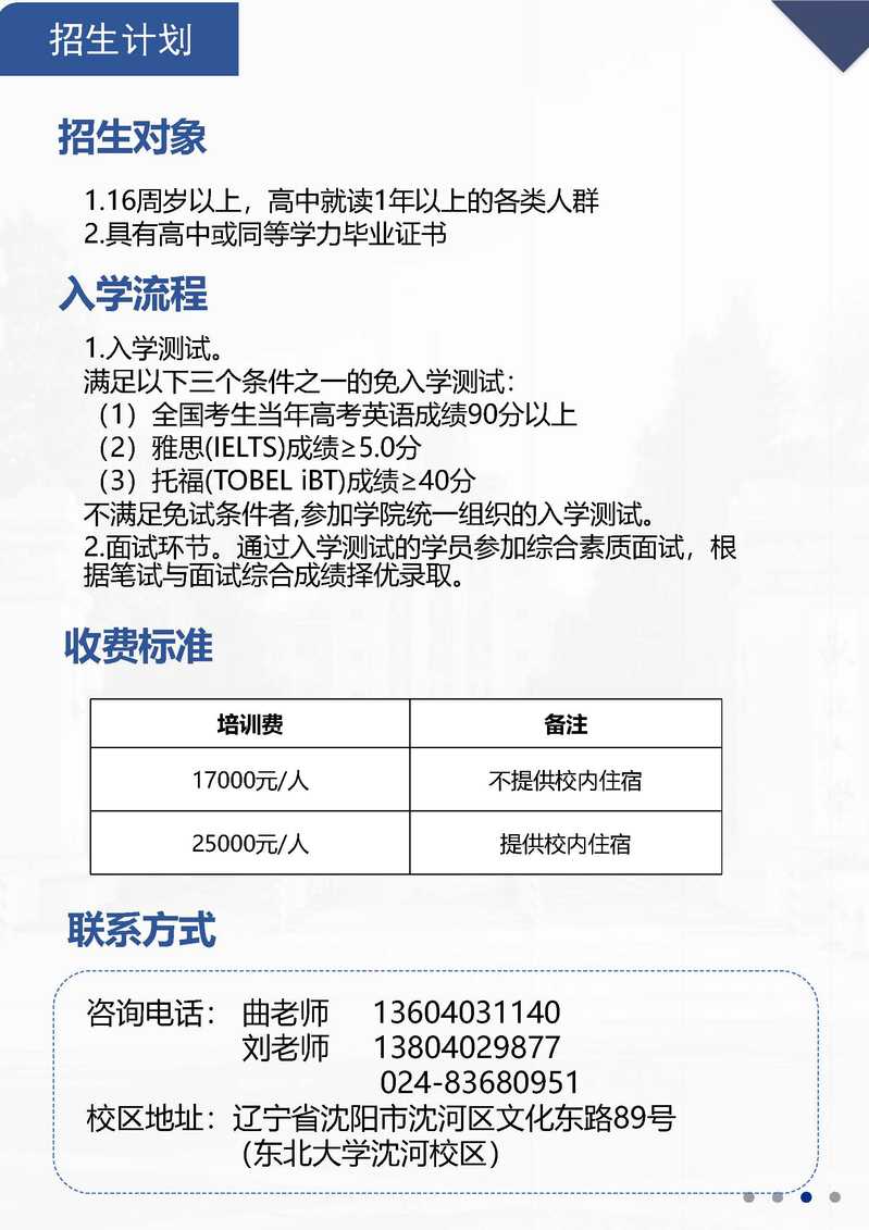 东北大学继续教育学院方向班国际课程招生简章